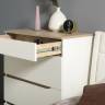 Комплект Кровать Муссон 11.28 + подъёмный ортопед + Тумба 16.03 + Комод 13.97. Цвет - белый/дуб эндгрейн элегантный. Обивка - Белая исскуственная кожа. Спальное место 1600х2000 мм. Объёмная прямоугольная стежка на изголовье и изножье, украшенная рядом пуговиц, добавляют кровати Муссон визуальной гармонии. Тумбочка прикроватная оборудована 2 ящиками. Комод с 4 выдвижными ящиками.