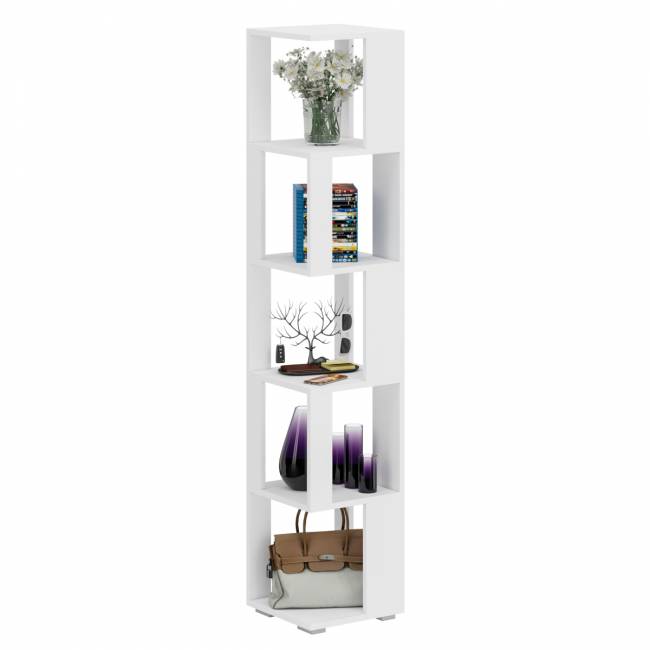 Стеллаж СВК. Цвет - белый. Габариты (ШхГхВ) 35х35х179 см. Стеллаж СВК визуально максимально легкий с прекрасным доступом к каждой полечке, идеально подойдет и для книг и журналов и как стенд для поделок Вашего ребенка. Конструктивно представляет из себя 5 ярусов с четырьмя полочками с доступом с четырех сторон.
